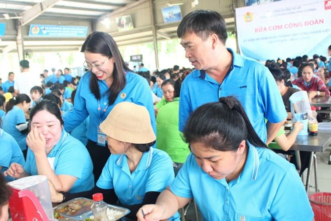 Công ty Cổ phần Đồng Phú Cường tổ chức Bữa cơm Công đoàn cho đoàn viên người lao động. Ảnh: Hà Anh Chiến