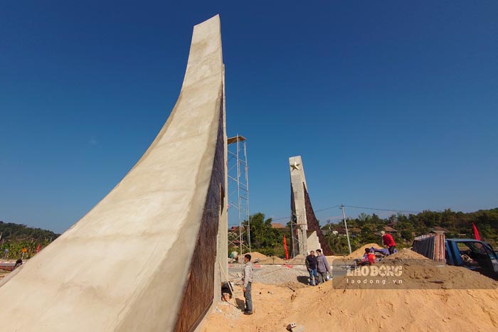 Cổng chào khu di tích lịch sử và du lịch văn hóa, sinh thái Mường Phăng, Điện Biên sắp hoàn thành. Ảnh: Quang Đạt