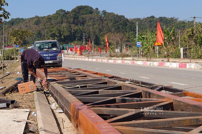 Thông tin tới phóng viên Báo Lao Động, đại diện chủ đầu tư là Sở Văn hóa, Thể thao và Du lịch tỉnh Điện Biên cho biết, hiện nay công trình đầu tư xây dựng cổng chào khu di tích lịch sử và du lịch văn hóa, sinh thái Mường Phăng đã hoàn thành khoảng 80% khối lượng công việc.