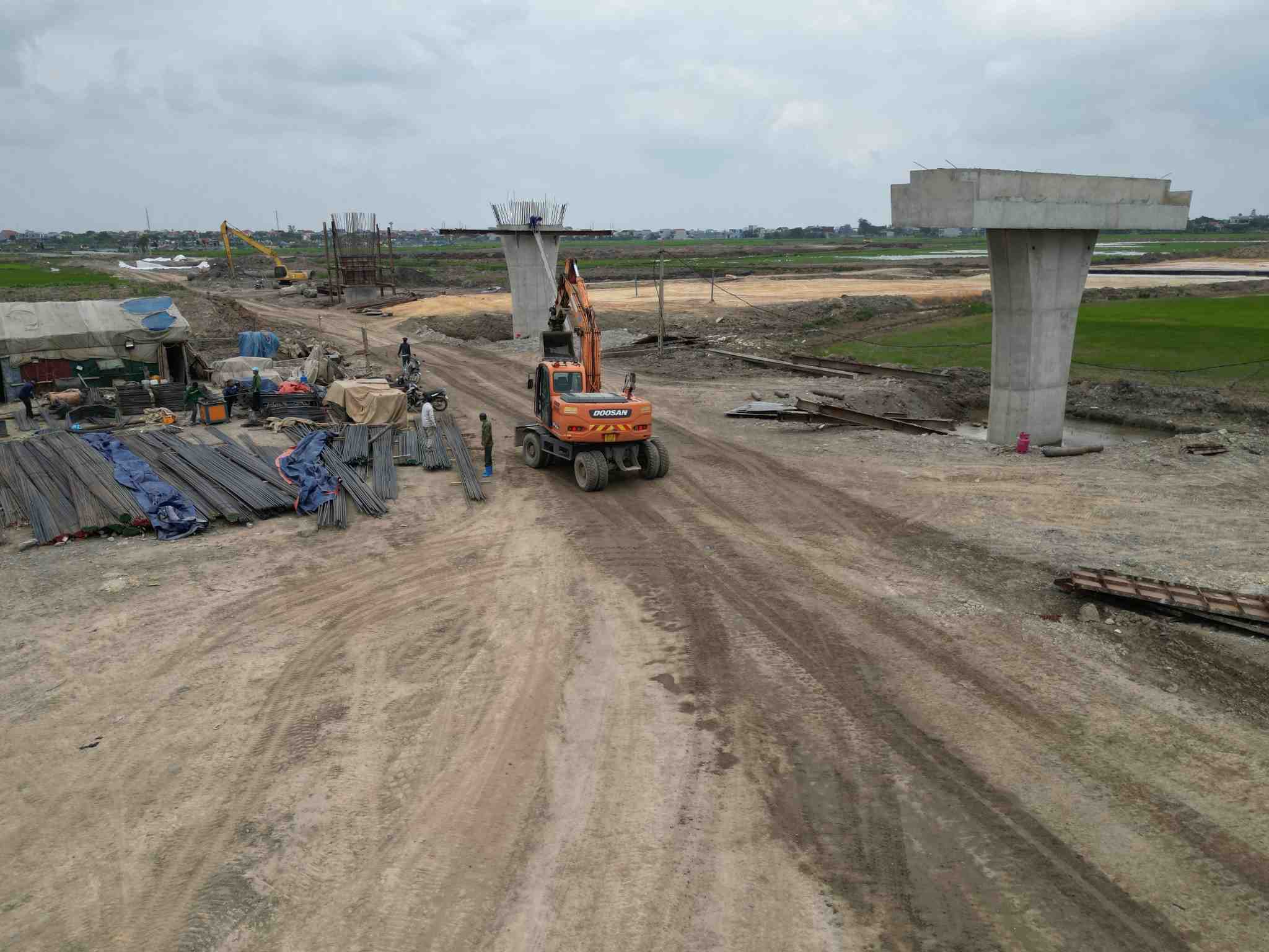 Hiện khối lượng thi công Dự án cao tốc Ninh Bình - Hải Phòng đoạn qua địa bàn tỉnh Ninh Bình cũ đạt khoảng 30%. Ảnh: Diệu Anh