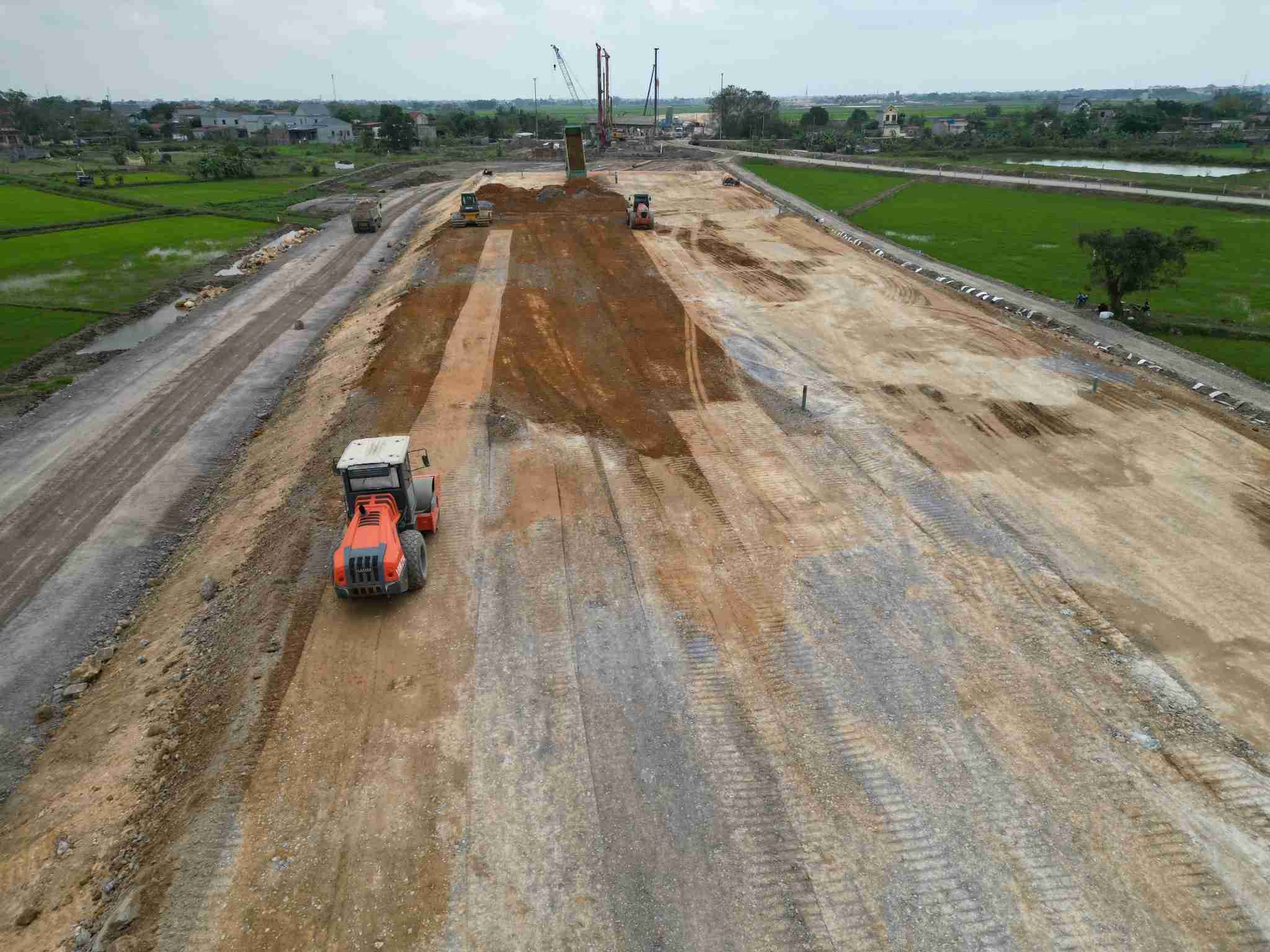 Trên tuyến chính của Dự án, hiện nay nhà thầu đang triển khai đồng loạt 7 mũi thi công, thực hiện các công việc như đào đất, đắp cát nền đường... Phần cầu triển khai 12 mũi thi công đồng loạt tại 12/12 vị trí thi công cầu. Trong đó, khối lượng công việc đã hoàn thành được 90% phần nền đắp cát.