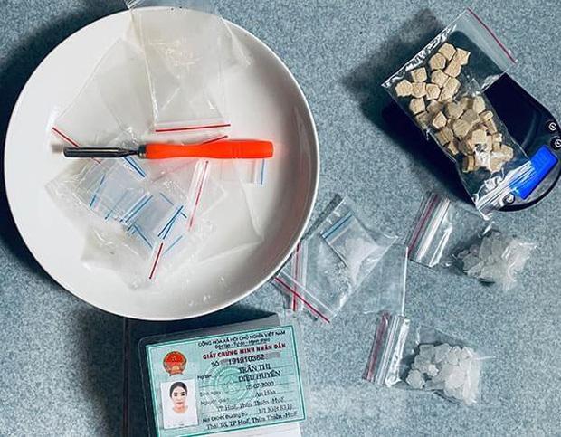 Khi khám nơi ở của Huyền, lực lượng Công an thu giữ 10 viên nén hình đa giác màu vàng, 3 túi nylon chứa các tinh thể màu trắng đối tượng khai là ma túy kẹo và Ketamine; tạm giữ số tiền hơn 16 triệu đồng.