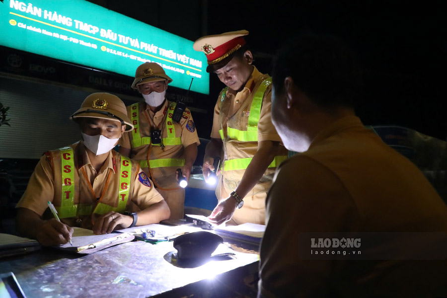 Đúng 20h, toàn bộ các đơn vị trực thuộc Phòng CSGT Hà Nội đồng loạt triển khai tổ công tác trên các tuyến, khu vực có nhiều hoạt động vận tải hàng hóa, xe chở vật liệu xây dựng, xe bồn trộn bê tông.