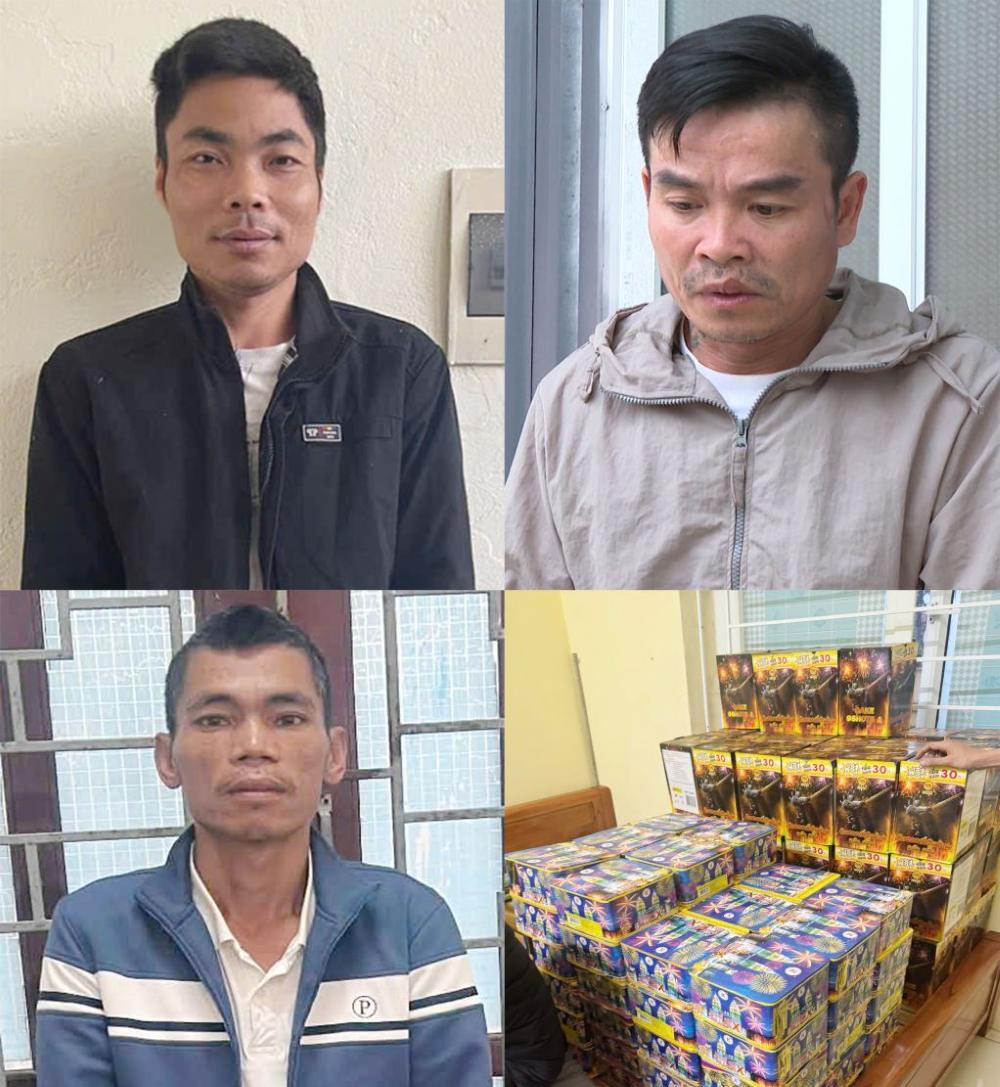 Các đối tượng bị bắt giữ gồm: Đoàn Công Sơn (SN 1991, trú tại xã Quảng Bình, tỉnh Thanh Hóa); Lê Hữu Hùng (SN 1991, trú tại xã Yên Thọ, tỉnh Thanh Hóa); Võ Minh (SN 1982, trú tại phường Quảng Trị, tỉnh Quảng Trị). Tang vật thu giữ gồm 136 hộp pháo hoa nổ, với tổng khối lượng gần 300 kg.