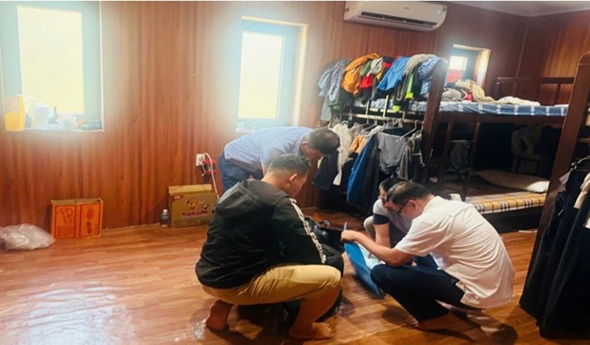 Lực lượng công an kiểm tra, bắt giữ đối tượng L.H.T lẩn trốn tại resort trên địa bàn tỉnh Đắk Lắk. Ảnh: Công an cung cấp