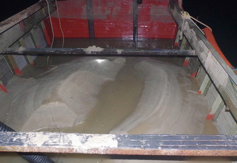 Tại thời điểm kiểm tra, lực lượng chức năng phát hiện trên khoang tàu có khoảng 3m³ cát nhưng các đối tượng không xuất trình được giấy tờ chứng minh nguồn gốc hợp pháp.