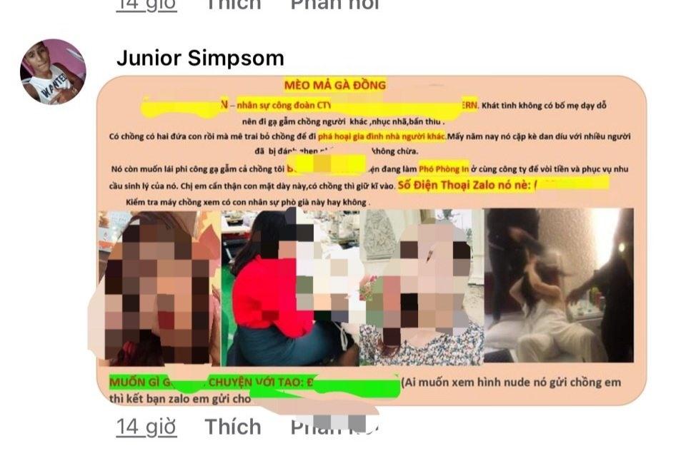 Cụ thể, các đối tượng ghép hình chị T.T.T với nam công nhân đã vay tiền và dựng chuyện chị T.T.T gạ gẫm cướp chồng người khác.