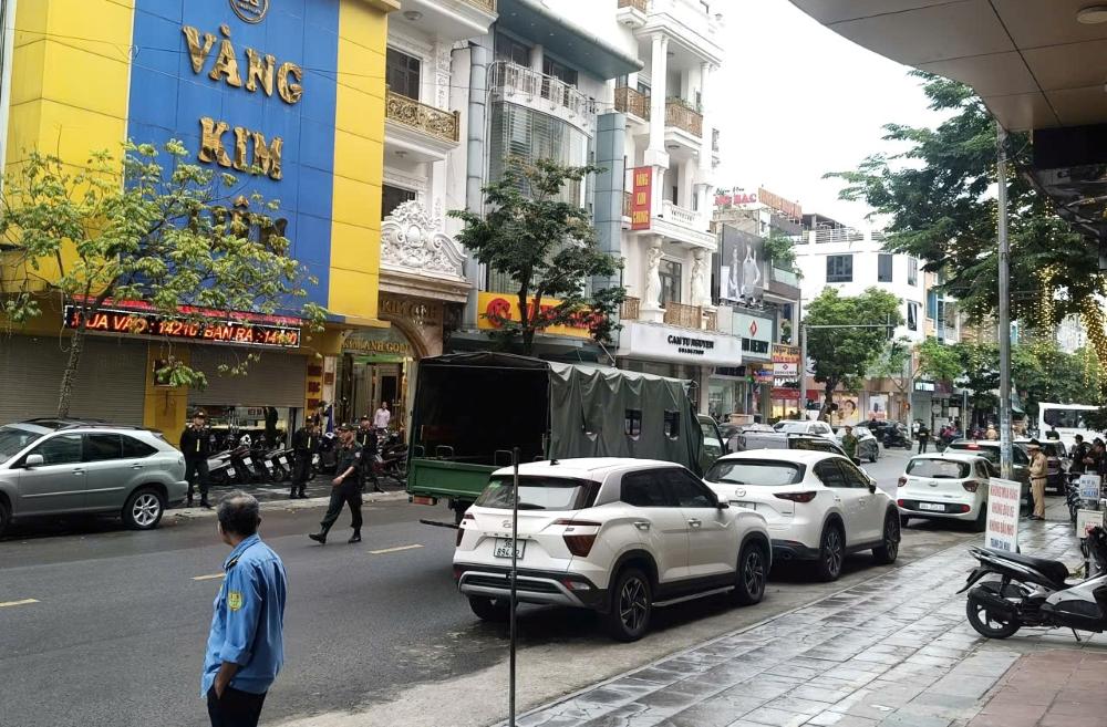 Đến khoảng 9h30 cùng ngày, lực lượng công an vẫn đang có mặt tại khu vực các cửa hàng vàng để khám xét. Việc khám xét thu hút sự chú ý của rất nhiều người dân.