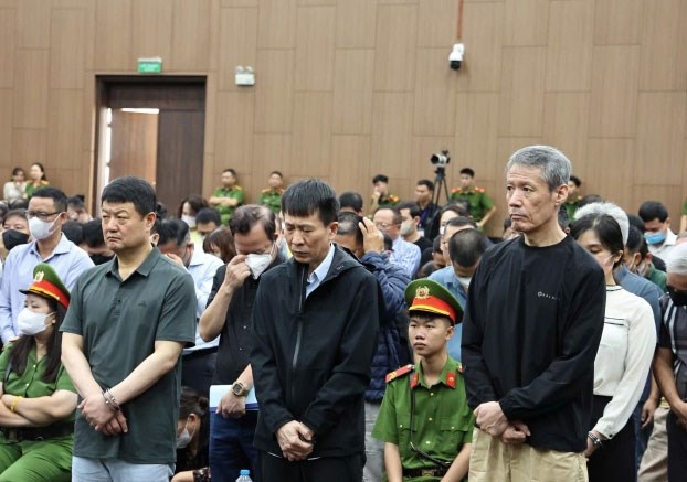 Những bị cáo trong đường dây đánh bạc nghìn tỉ đồng, bị xét xử tại phiên tòa sơ thẩm. Ảnh: Quang Việt