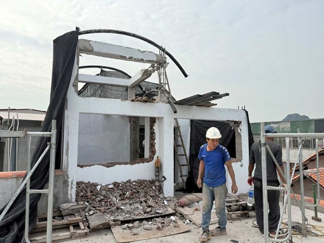 Tháo dỡ công trình xây dựng trái phép trong vùng lõi Di sản Tràng An. Ảnh: Nguyễn Trường