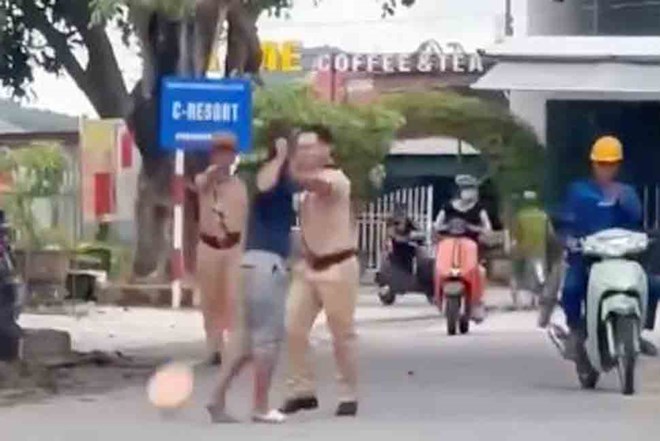 Đối tượng không chấp hành hiệu lệnh còn tấn công cảnh sát giao thông. Ảnh cắt từ clip.