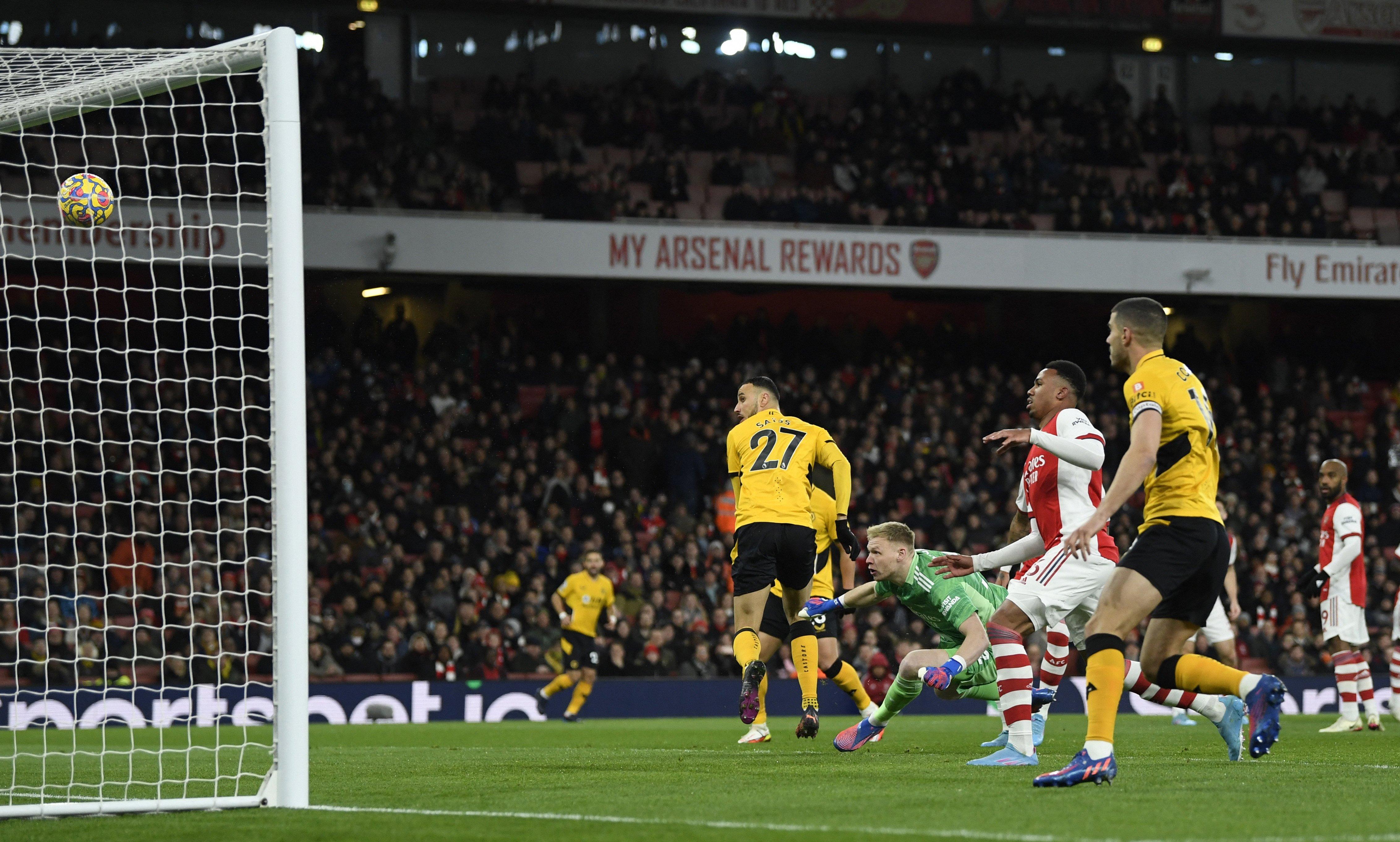 Bàn phản lưới của thủ môn Jose Sa ở phút bù giờ giúp Arsenal giành 3 điểm trong cuộc tiếp đón Wolves ở trận đá bù vòng 20 Premier League rạng sáng 25/2 (giờ Hà Nội).