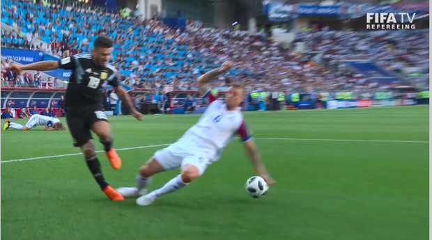 Nhưng góc cánh tay thế nào thì được gọi là hệ quả của chuyển động tự nhiên và giúp cơ thể chống đỡ khi ngã mới là câu chuyện phức tạp, mất nhiều thời gian để phân xử. Trong trường hợp này, cánh tay cầu thủ U23 Malaysia tạo một góc gần 180 độ so với thân, dẫn đến cảm giác anh ta cố tình vươn tay ra để cản bóng, nên bị IFAB xếp vào dạng "cánh tay không tự nhiên", giống với tình huống Duy Mạnh chơi bóng bằng tay ở vòng loại 3 World Cup 2022. Nếu anh ta khép tay lại khi trượt xuống mặt cỏ sau cú xoạc, như 2 tình huống dưới đây thì mới có thể được tính là tư thế tay tự nhiên.
