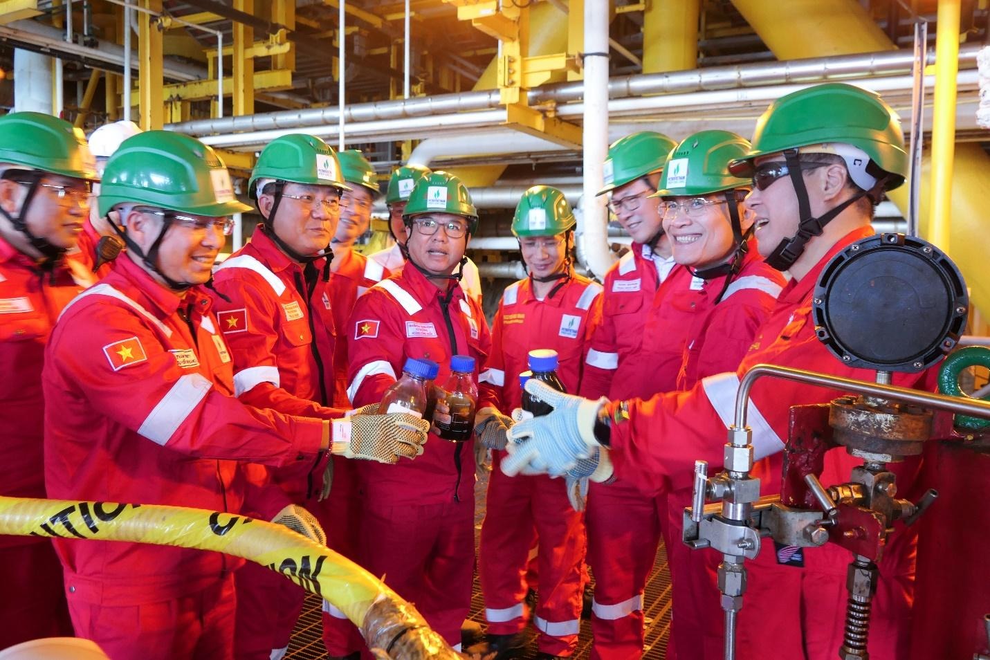 Đoàn công tác Ủy ban Kiểm tra Trung ương thăm, chứng kiến và chia sẻ niềm vui cùng PVEP với những mẫu dầu từ mỏ Sư Tử Vàng
