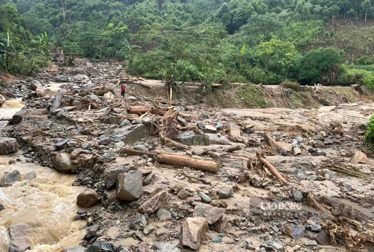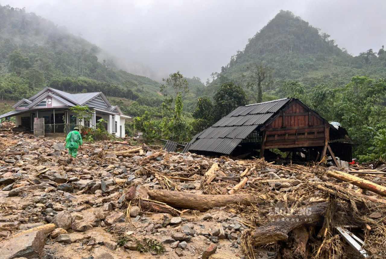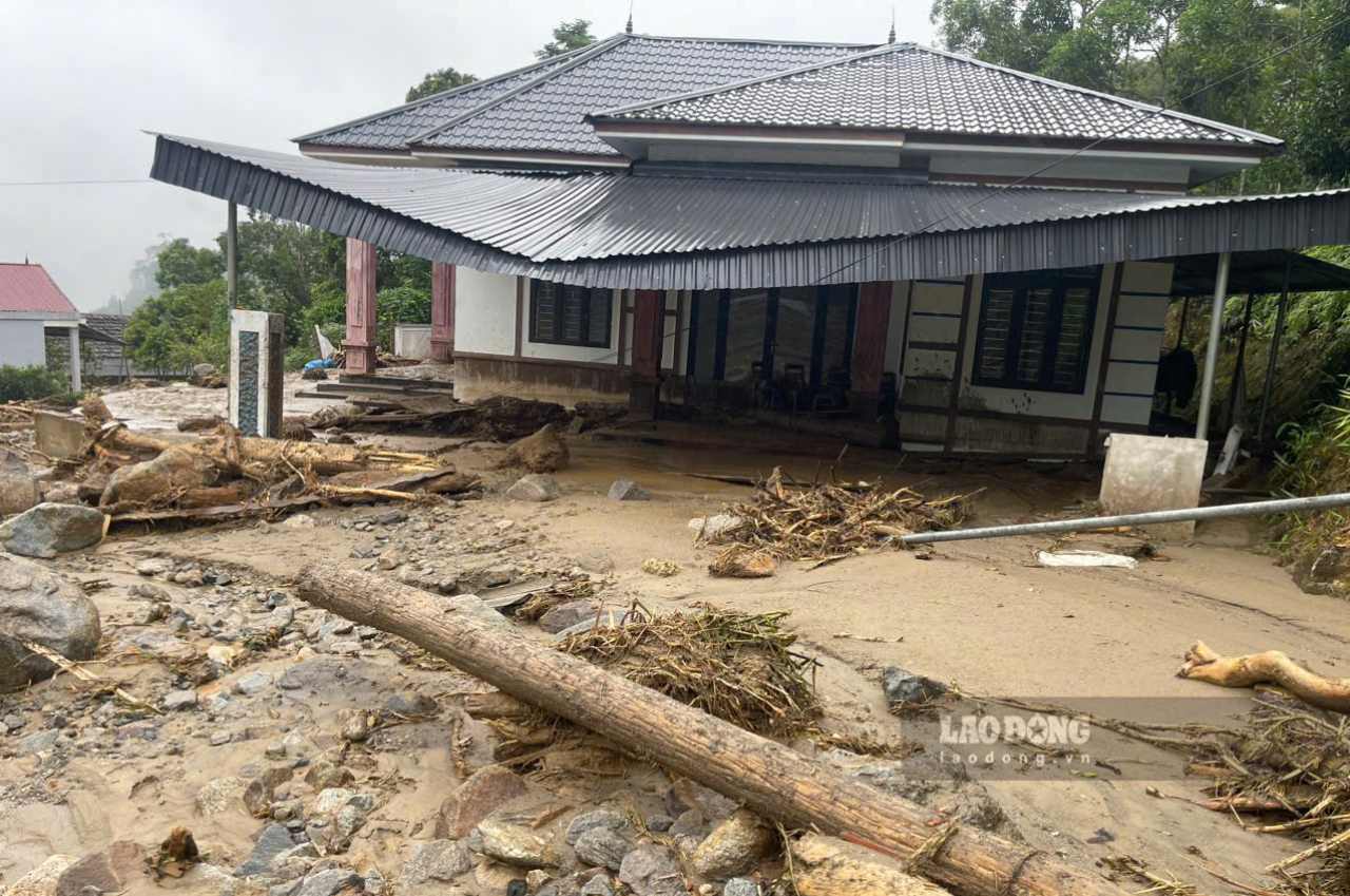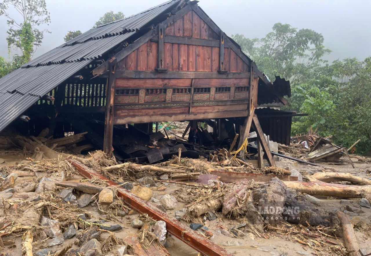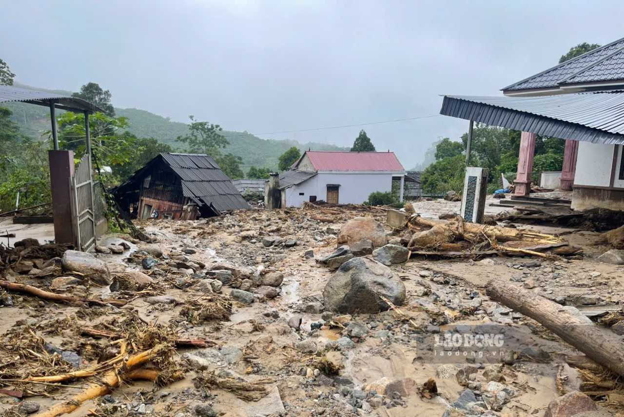 Ba ngôi nhà kiên cố bị cuốn trôi hoàn toàn, hơn mười căn khác đều bị bùn đất, cây cối, đá tảng tràn vào vùi lấp, hư hỏng nặng.