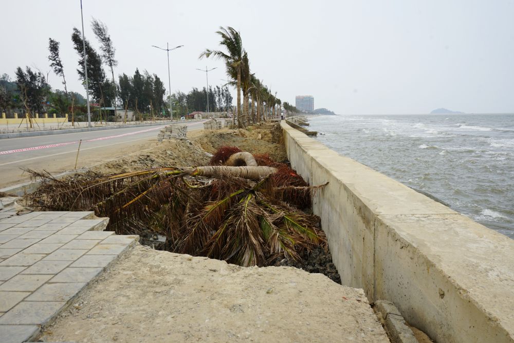 Cũng theo đại diện UBND xã Hoằng Tiến, công trình được đưa vào sử dụng từ tháng 6.2025 (thời gian bảo hành 15 tháng). Sau khi hoàn thành, công trình chịu ảnh hưởng của nhiều cơn bão, đặc biệt là bão số 5 và số 10 năm 2025, dẫn đến hư hỏng. Hiện tình trạng sụt lún, sạt lở vẫn tiếp diễn và có nguy cơ lan rộng.