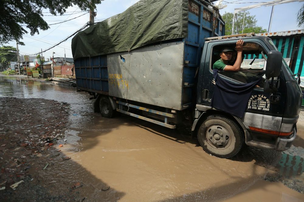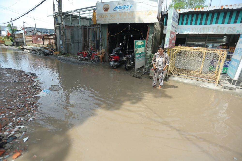 Bà Thảo (42 tuổi, ngụ xã Vĩnh Lộc) ngao ngán: "Đường xuống cấp, ngập nước khiến người dân hai bên không buôn bán được gì. Nhiều lần tôi thấy học sinh, công nhân đi lại bị té ngã". Dù trời đã tạnh mưa hai ngày, nhiều đoạn đường vẫn đọng nước kéo dài.