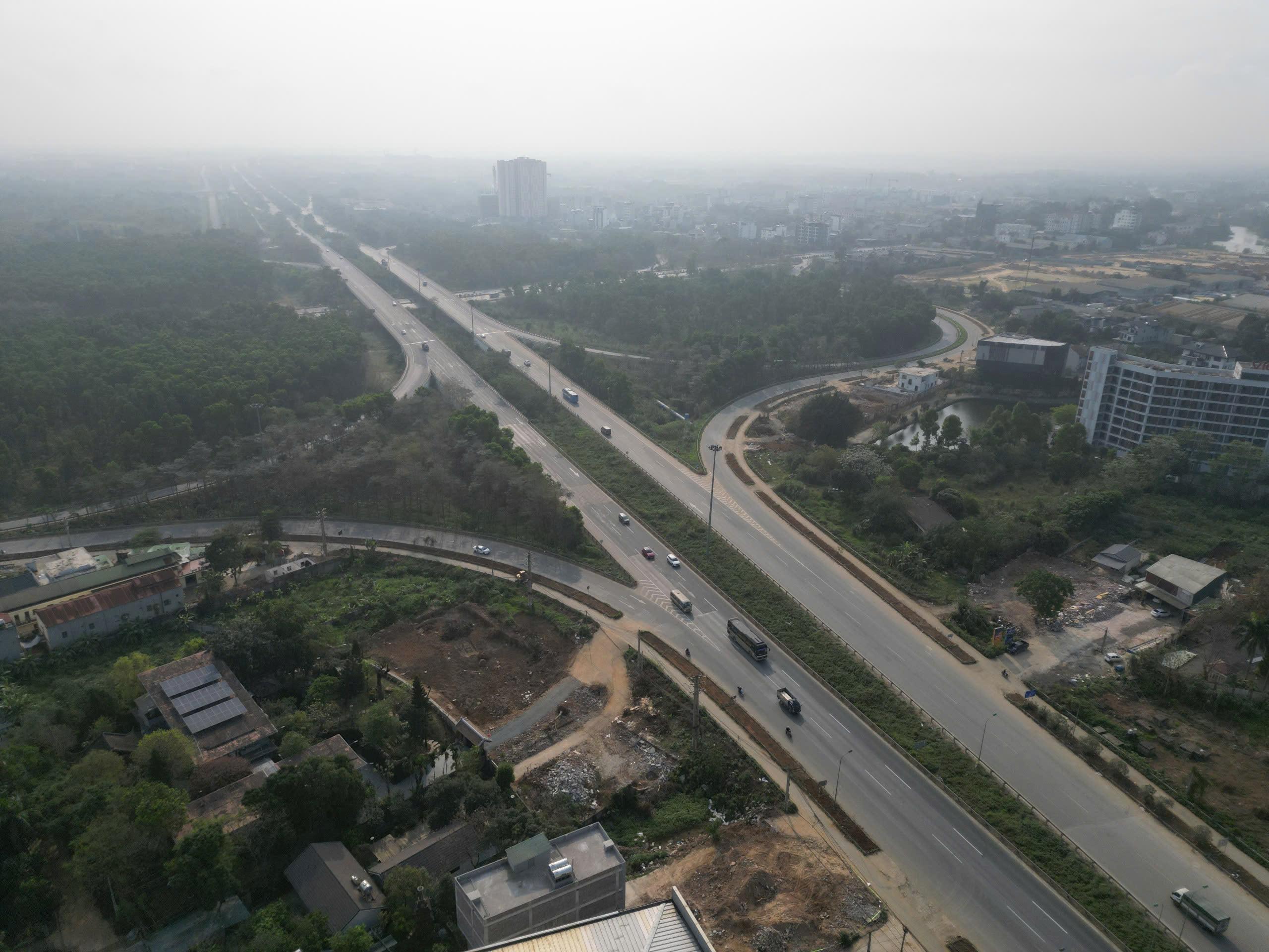 Điểm đầu dự án tại nút giao hoa thị giữa cao tốc Đại lộ Thăng Long với Quốc lộ 21. Ảnh: Sóng Hữu
