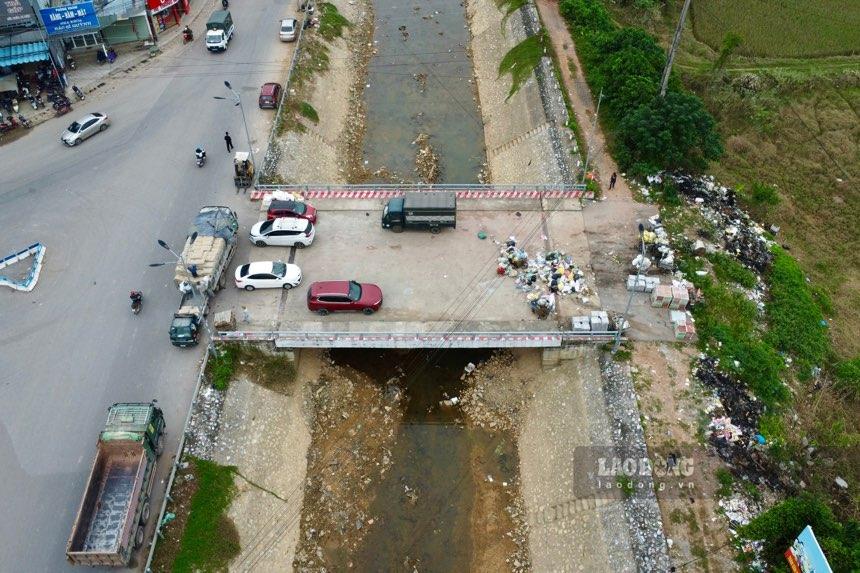 Mặt cầu Kiều Chính thành nơi đổ rác thải sinh hoạt tự phát. Ảnh: Đặng Vũ.