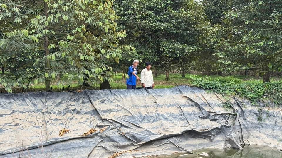 Những ngày này, tại các tuyến kênh nội đồng và trong vườn sầu riêng, không khí lao động diễn ra khẩn trương. Người dân tập trung nạo vét mương vườn, gia cố bờ bao, lắp đặt thêm bồn chứa, túi chứa nước nhằm chủ động nguồn nước tưới trong cao điểm mùa khô.