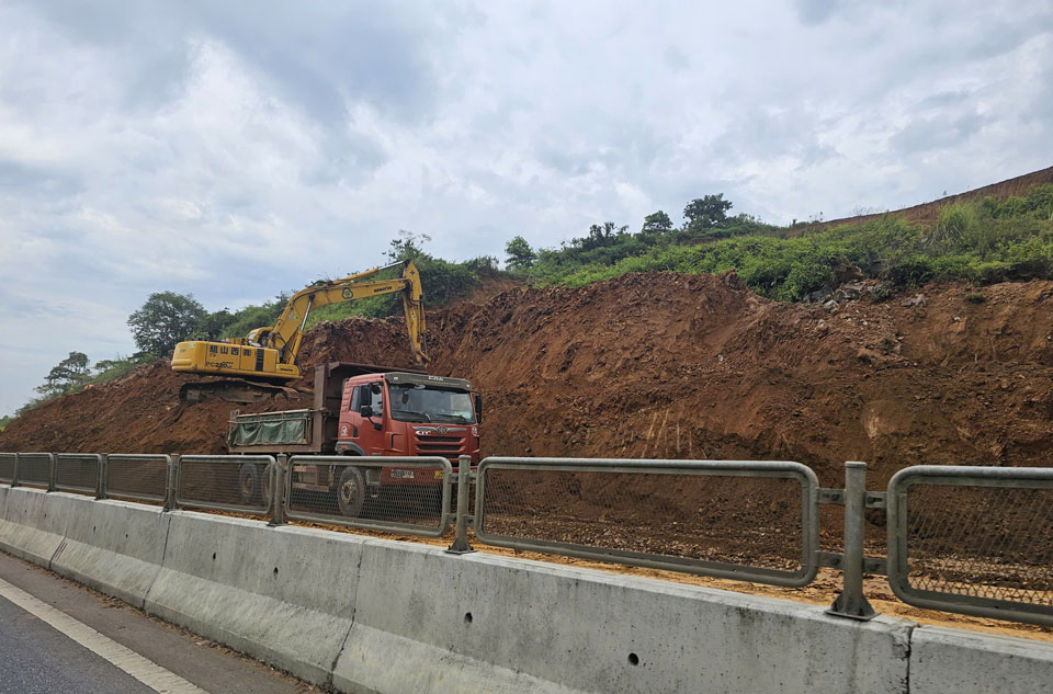 Khắc phục sạt lở đất trên cao tốc Nội Bài - Lào Cai