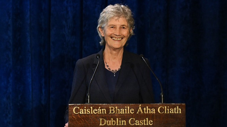 | Tổng thống đắc cử của Ireland, Catherine Connolly, có bài phát biểu tại Lâu đài Dublin, ngày 25/10/2025. |