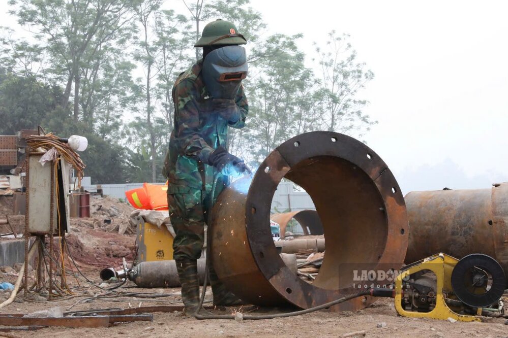 Công trình được thi công cả ngày lẫn đêm. Ảnh: Tô Công