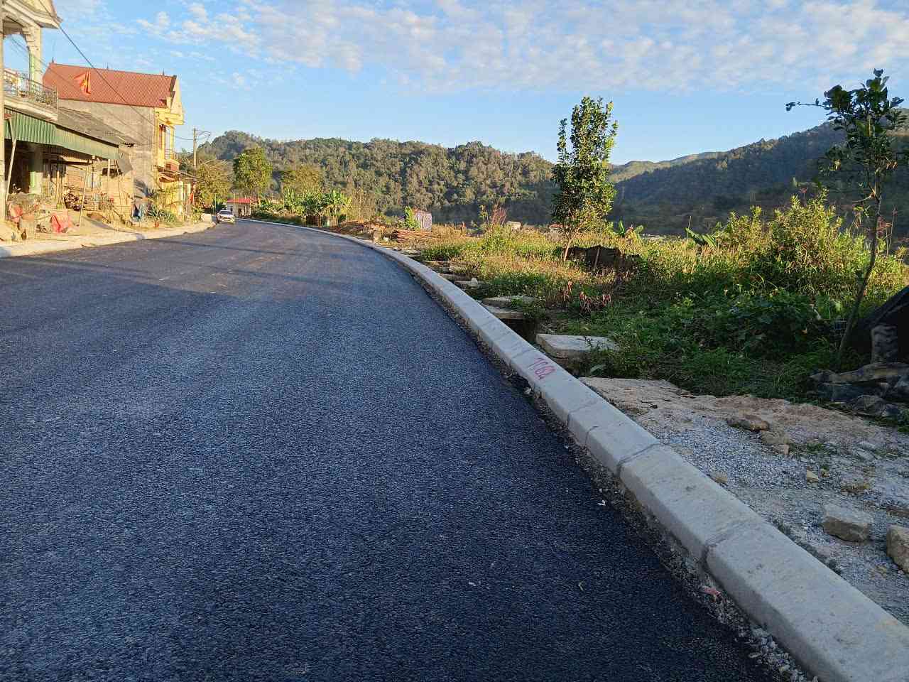 Đứng tại công trường, có thể thấy con đường mới đang dần hiện ra với hình hài hoàn chỉnh, từng đoạn nhựa đen bóng nối dài qua sườn núi.