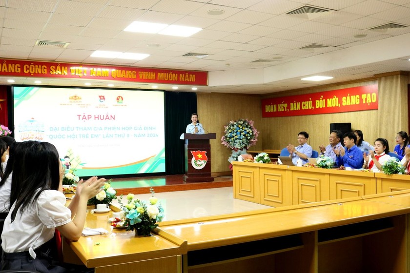 Ngày 17/8, Hội đồng Đội Trung ương tổ chức tập huấn đại biểu tham gia phiên họp giả định “Quốc hội trẻ em” lần thứ II - năm 2024 theo hình thức trực tiếp kết hợp trực tuyến. (Nguồn: ĐTNCSHCM) |
