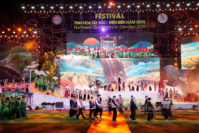 Chương trình nghệ thuật khai mạc Festival “Tinh hoa Tây Bắc – Điện Biên 2025” được dàn dựng công phu, kết hợp giữa truyền thống và hiện đại, chia thành 4 chương.