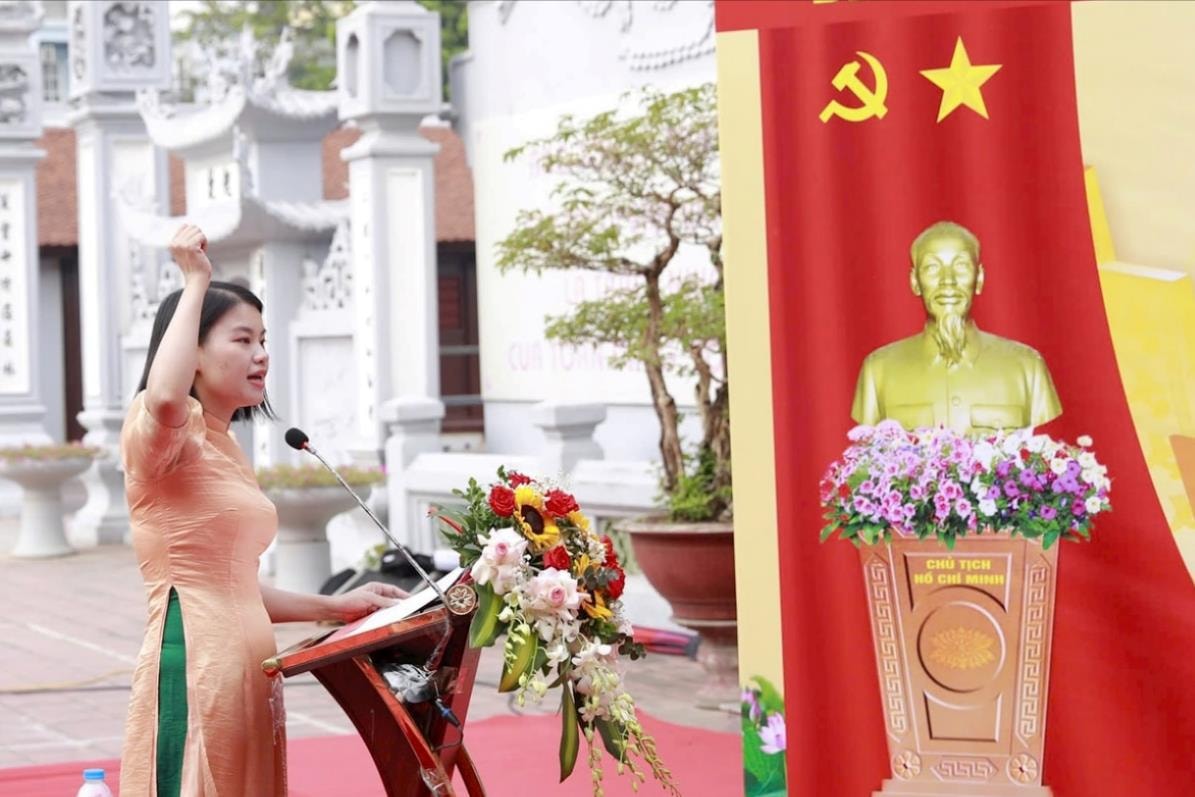 Sáng 18-11, tại khu tượng đài Chủ tịch Hồ Chí Minh, phường Việt Hưng, Ban Thường vụ Quận ủy Long Biên tổ chức lễ kết nạp đảng viên cho 9 đảng viên là giáo...