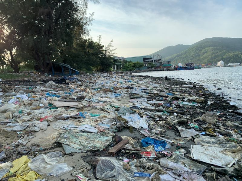 Đà Nẵng - Dọc vịnh Mân Quang (phường Sơn Trà) bị bao phủ với một lượng rác thải lớn gây ảnh hưởng đến cảnh quan và môi trường xung quanh.
