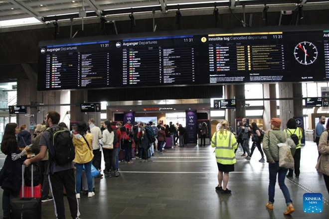 Hành khách xếp hàng tại sân bay Oslo, thủ đô Na Uy. Ảnh: Xinhua
