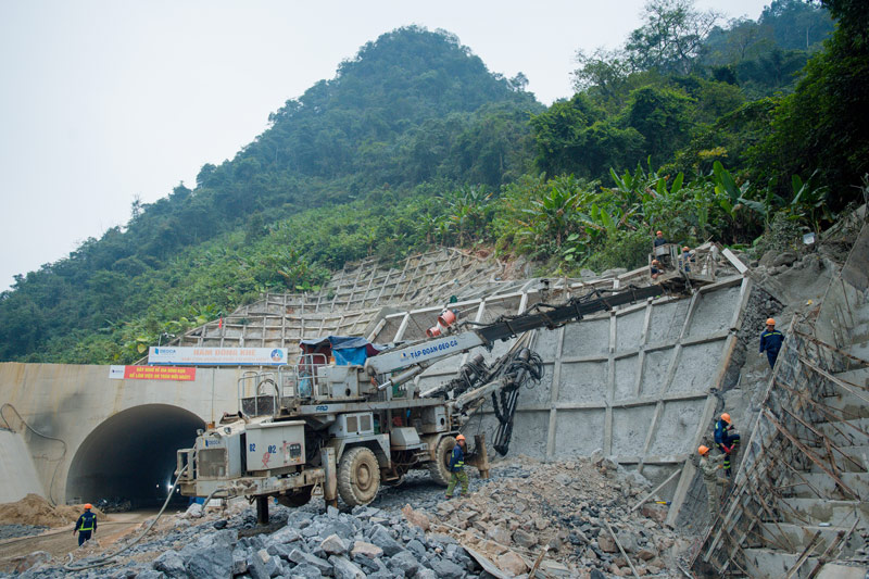 Ngày 17.12, trên công trường, hơn 3.000 cán bộ, kỹ sư, công nhân đang hối hả làm việc, họ tỏa đi hàng trăm mũi thi công, khoan núi, mở đường, đẩy nhanh tiến độ dự án.