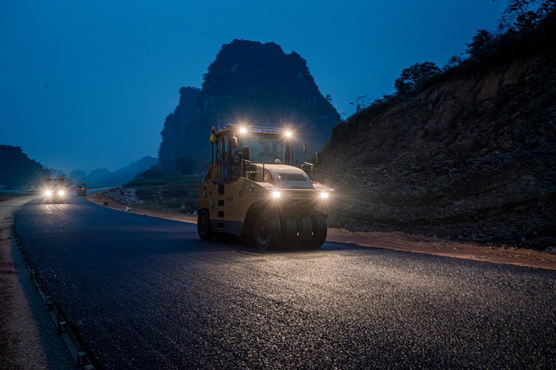 Cao Bằng - Trên công trường cao tốc Đồng Đăng - Trà Lĩnh, các công nhân đang ngày đêm tăng ca để kịp thông tuyến kỹ thuật.