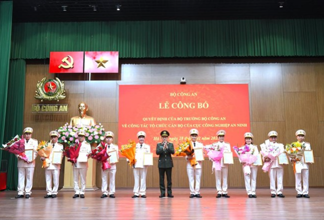 Bộ Công an công bố quyết định của Bộ trưởng Bộ Công an về công tác tổ chức cán bộ Cục Công nghiệp an ninh.