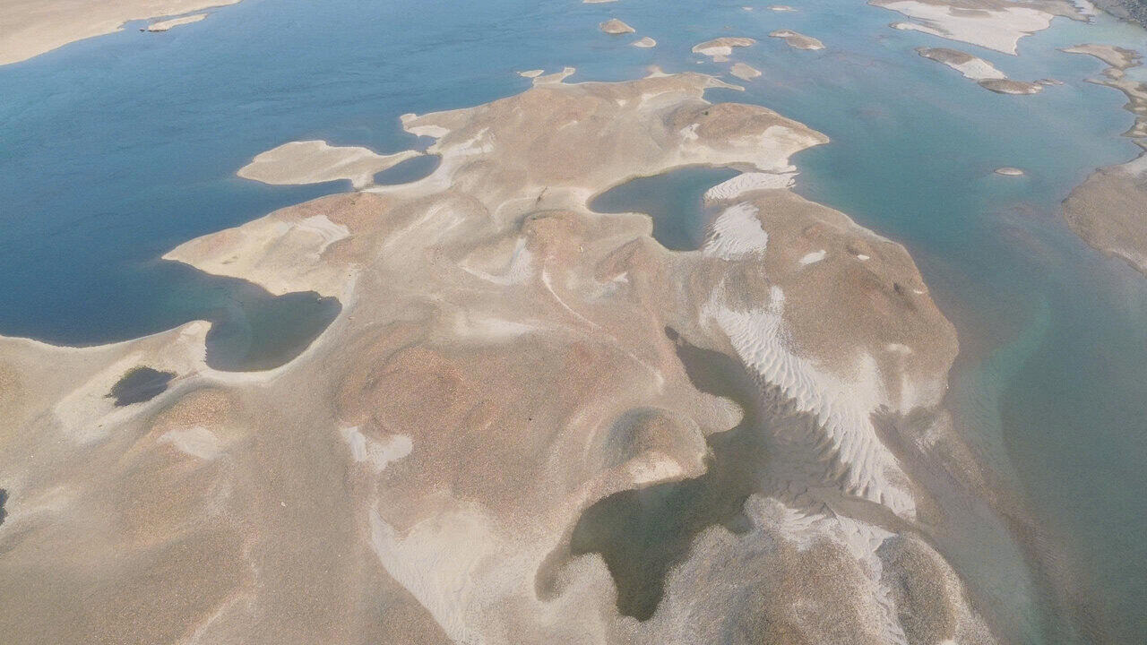 Sông Đà cạn trơ đáy, lộ nhiều cồn cát hiếm gặp dưới chân thủy điện