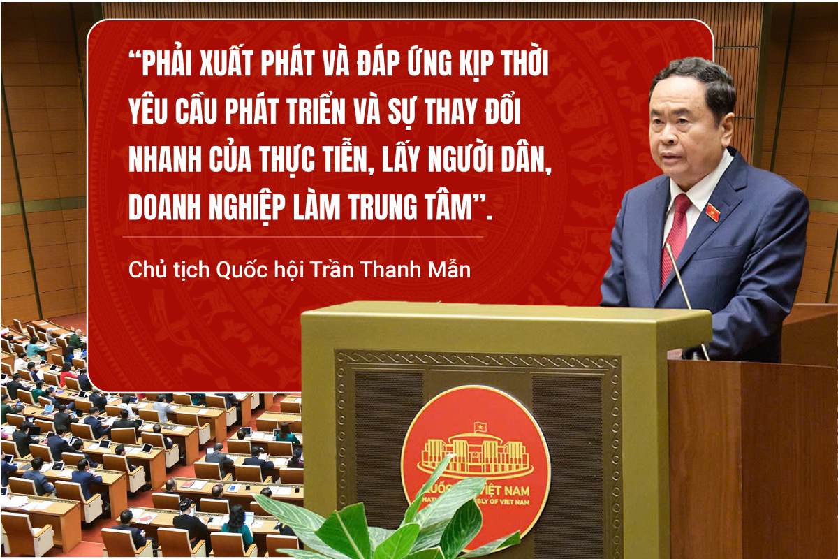 Những đổi mới này theo Chủ tịch Quốc hội Trần Thanh Mẫn là đổi mới quy trình xây dựng pháp luật, chuyên nghiệp, khoa học, kịp thời, khả thi, hiệu quả. Phải xuất phát và đáp ứng kịp thời yêu cầu phát triển và sự thay đổi nhanh của thực tiễn, lấy người dân, doanh nghiệp làm trung tâm.
