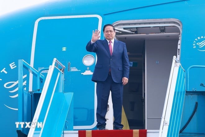 Ủy viên Bộ Chính trị, Thủ tướng Chính phủ Phạm Minh Chính lên đường sang Thủ đô Vientiane, Lào đồng chủ trì Kỳ họp lần thứ 48 Ủy ban liên Chính phủ Việt Nam - Lào. Ảnh: TTXVN