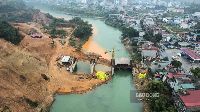 Hiện đang là mùa khô, nước sông Lô xuống thấp đã tạo điều kiện thuận lợi để đẩy nhanh tiến độ dự án. Thường trực tại công trường dự án có khoảng hơn 40 công nhân cùng nhiều phương tiện thi công.