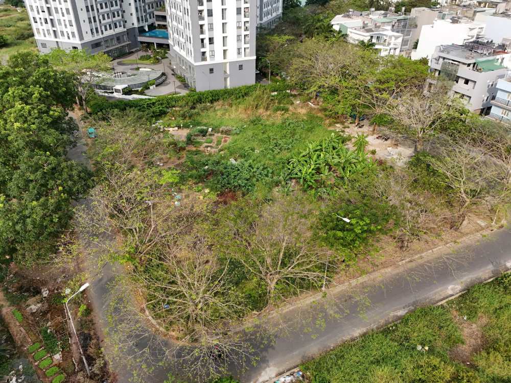 Lô đất nằm trong khu dân cư với căn hộ, nhà phố đã có nhiều người sinh sống. Hiện phần đất đấu giá được người dân tận dụng để trồng chuối, rau củ. Ảnh: Anh Tú