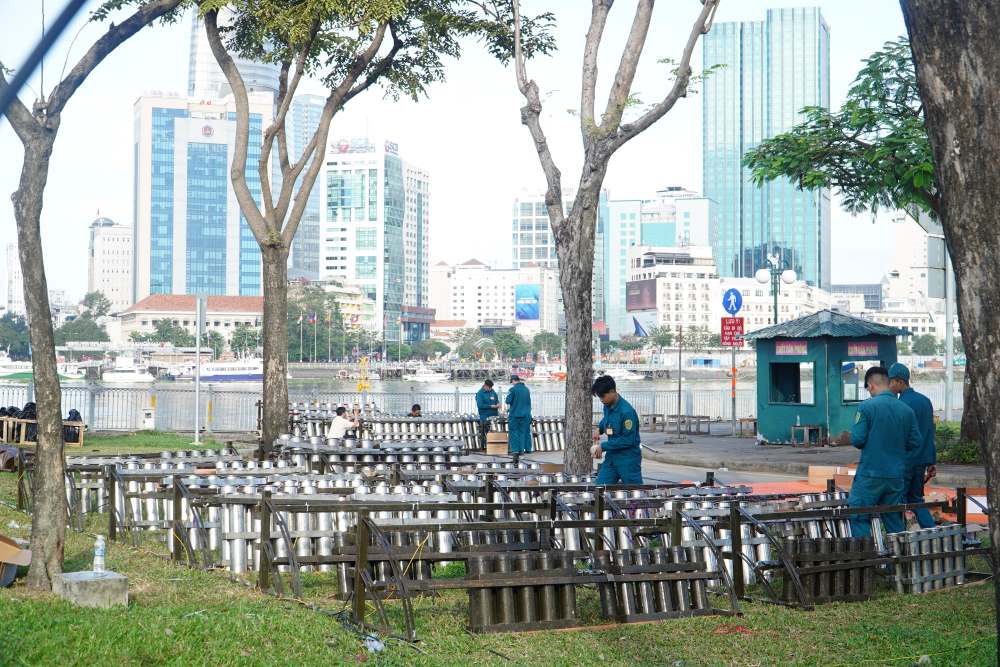 Trong suốt 2 ngày qua, lực lượng chức năng đã triển khai quy trình nghiêm ngặt từ sắp xếp nòng pháo, đi dây điện đến đấu nối đạn vào giàn. Năm nay, do khối lượng công việc lớn, các cán bộ, chiến sĩ Bộ Tư lệnh TPHCM đã trực tiếp đảm nhiệm khâu kỹ thuật đấu nối để đảm bảo tiến độ.
