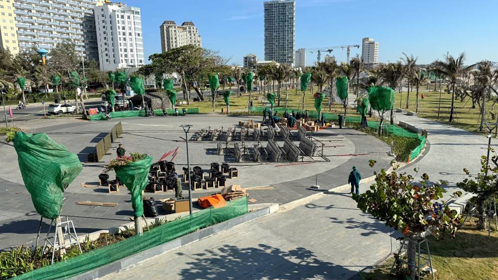 Sáng 16.2 (29 Tết), ghi nhận của phóng viên tại Công viên hầm vượt sông Sài Gòn (phường An Khánh), trận địa pháo hoa tầm cao quy mô nhất thành phố đã hoàn tất chuẩn bị, sẵn sàng cho thời khắc chuyển giao năm mới Bính Ngọ 2026.