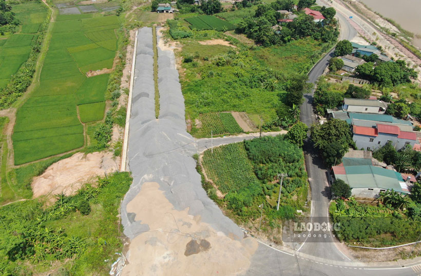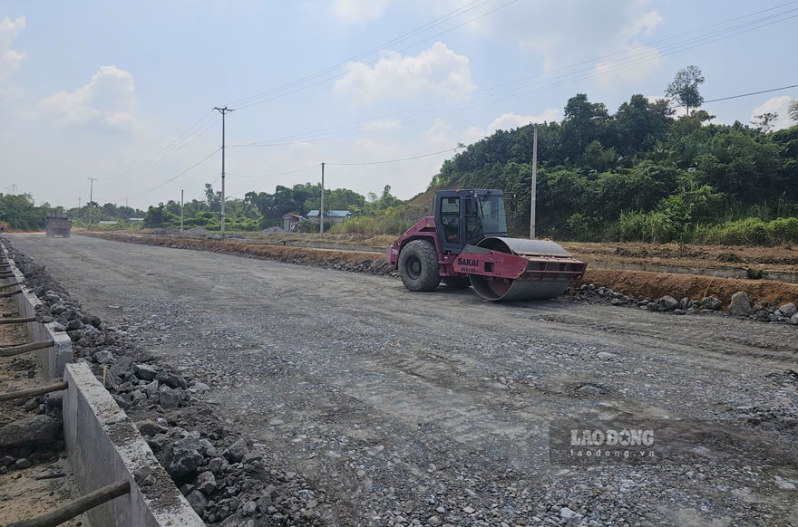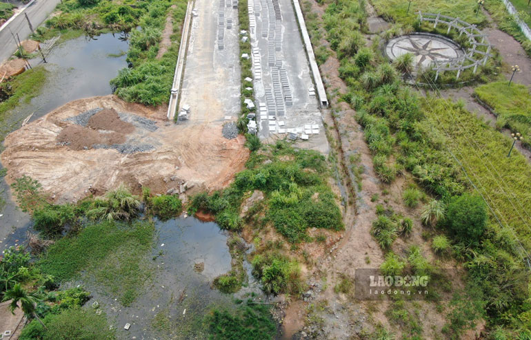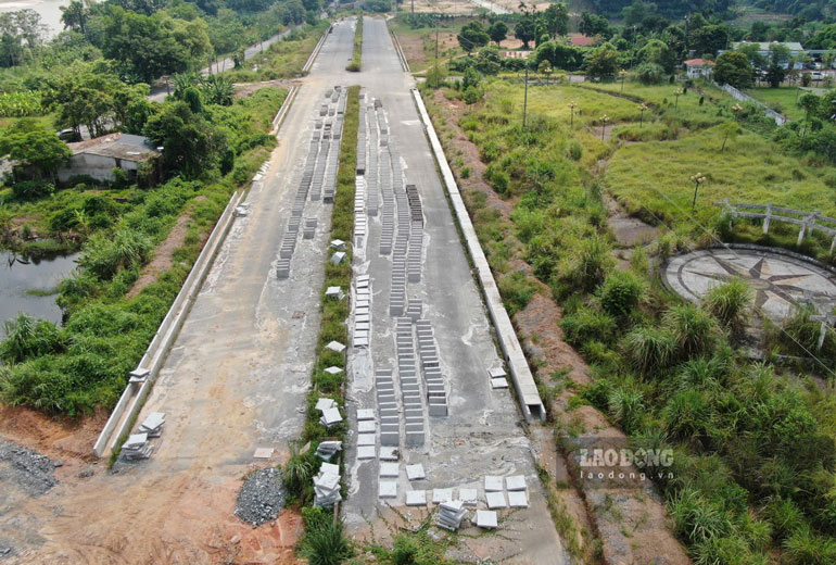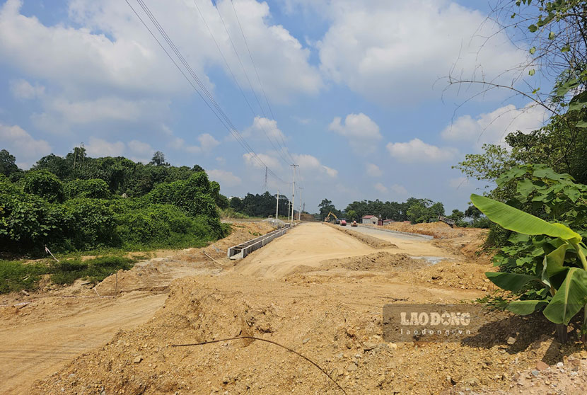 Một số đoạn đang thảm mặt đường, nhiều vị trí phải dừng lại do đi vướng nhà dân. Dọc tuyến, nhiều máy móc và vật liệu tập kết chờ thi công. Đặc biệt, có những đoạn thi công dở dang sau nhiều năm, cỏ mọc um tùm.