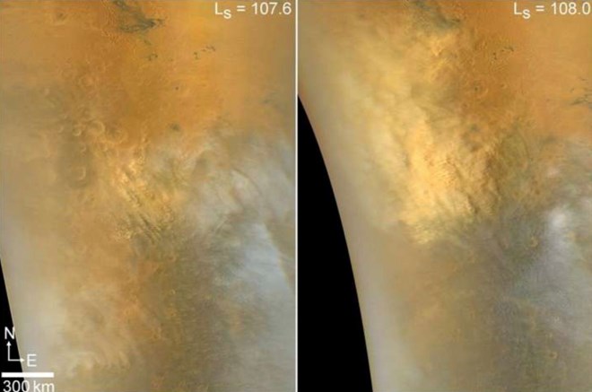 Ở độ cao đó, lượng nước cao gấp 10 lần mức thông thường. Hiện tượng này chưa từng được quan sát trong các năm sao Hỏa trước đó và cũng không được các mô hình khí hậu hiện tại dự đoán.