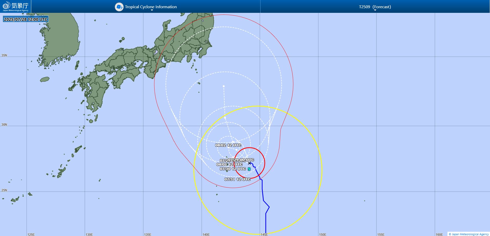Cảnh báo gió giật mạnh đã được phát đi cho khu vực phía tây và trung tâm biển Philippines, bao gồm vùng biển phía đông đảo Luzon, phía đông nam Đài Loan (Trung Quốc) và phía nam quần đảo Ryukyu (Nhật Bản). Dự báo gió mùa tây nam tại khu vực này sẽ đạt 56-65 km/h trong 24 giờ tới, sau đó giảm dần dưới ngưỡng 56 km/h vào ngày 30.7.