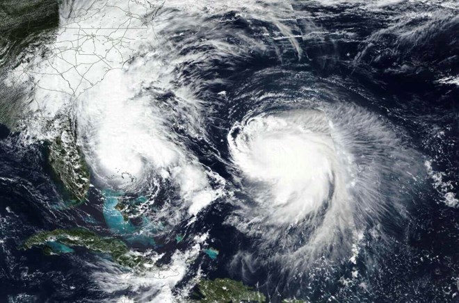 Bão Imelda (trái) và bão Humberto. Ảnh: NASA
