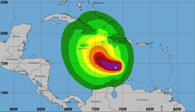 Bão số 13 Melissa dự báo mạnh lên thành cuồng phong. Ảnh: Trung tâm Bão Quốc gia Mỹ