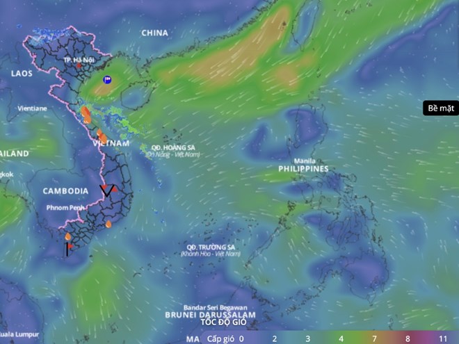 Dự báo thời tiết biển có những diễn biến cần lưu ý. Trên đây là hình ảnh các trường gió trên biển cập nhật hồi 10 giờ ngày 26.5. Nguồn: Hệ thống Giám sát thiên tai Việt Nam