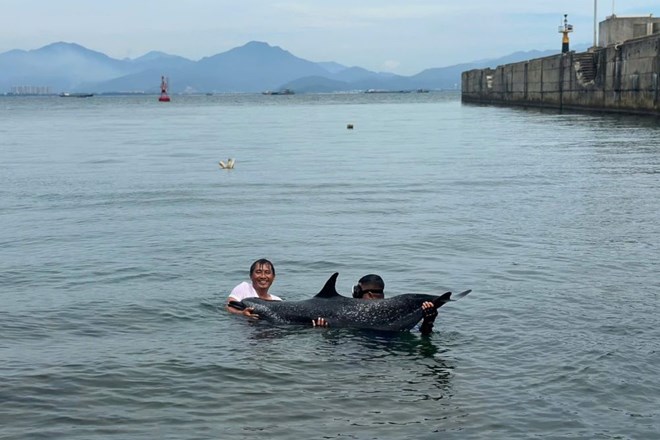 Con cá heo nặng khoảng 200kg, có dấu hiệu kiệt sức. Tiếp nhận thông tin, các cán bộ, chiến sĩ của Trạm Biên phòng cửa khẩu cảng Tiên Sa tiếp cận và hồi phục sức khỏe cho cá heo, rồi phối hợp với một số ngư dân dùng ghe để đưa cá heo ra khơi.
